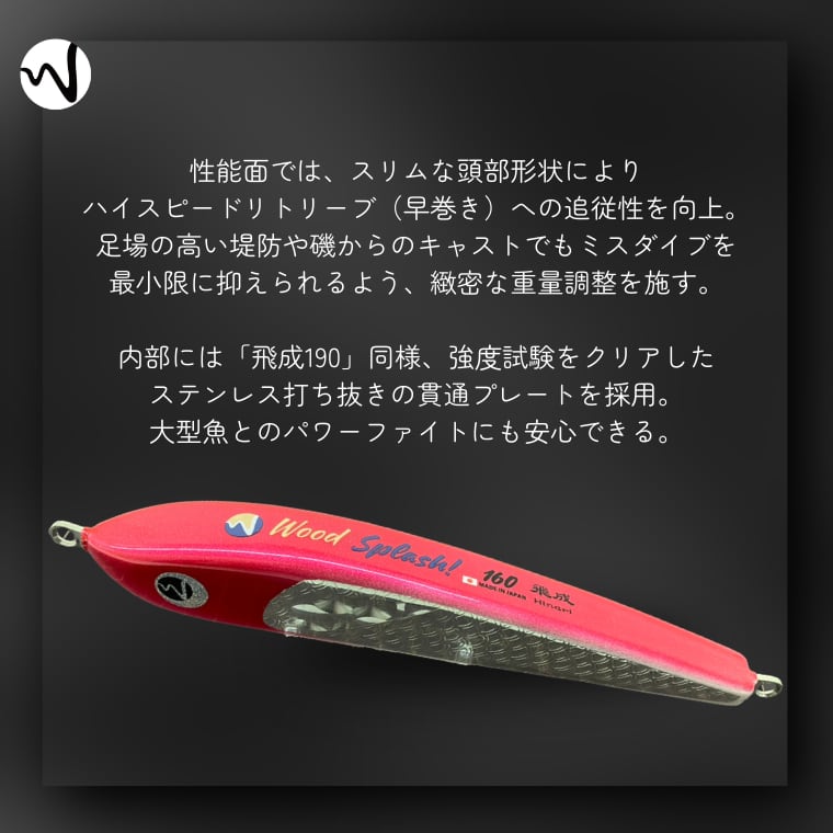 【Wood Splash!】ウッドルアー 飛成 160mm 42g スプラッシュピンク ヒラマサ 青物全般 村田金箔 アルミ ホロ